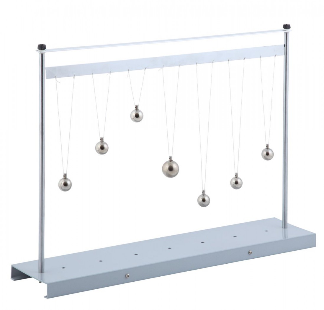 В перекладине выполнены сквозные отверстия с одинаковым интервалом, которые служат для закрепелния бифилярных подвесов 7 шаров-маятников.