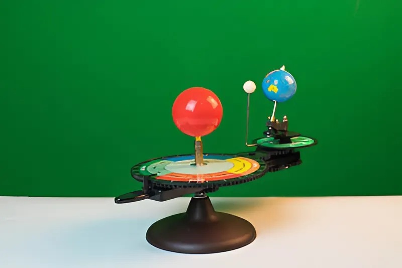 Модель позволяет демонстрировать взаимное расположение и относительное движение трех небесных тел: Солнца, Земли и Луны.
