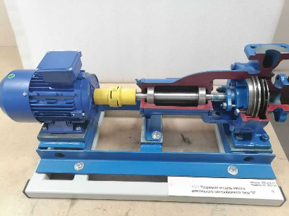 Разрезная модель выполнена на подставке, позволяет изучать конструкцию насоса консольного центробежного типа «К»