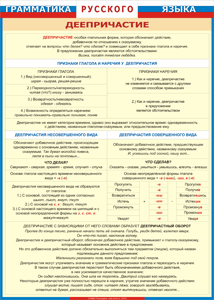 Таблица "Грамматика русского языка. Деепричастие" (100х140 сантиметров, винил) - fgospostavki.ru - Дмитров