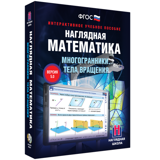 Интерактивное учебное пособие разработано с учётом ФГОС и примерной программы по математике основного и среднего общего образования. Материал интерактивного учебного пособия «Наглядная математика. Многогранники. Тела вращения» содержит темы учебных курсов по геометрии 5-11 классов.