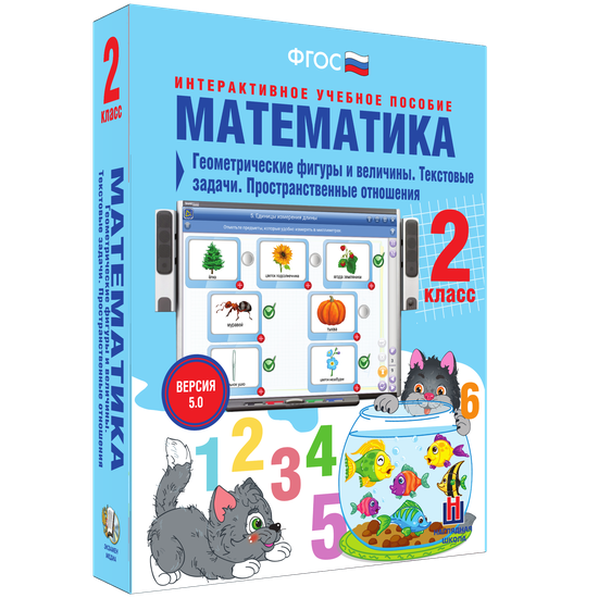 Пособие можно использовать с любыми учебниками, входящими в Федеральный перечень. Интерактивное учебное пособие «Математика 2 класс. Геометрические фигуры и величины. Текстовые задачи. Пространственные отношения» содержит все темы годового учебного курса по математике. В каждую тему включены тестовые контрольные задания, интерактивные упражнения на усвоение теоретического материала и на отработку практических навыков. В пособии использованы следующие медиаобъекты: анимации, аудиосопровождение заданий, интерактивные схемы, работа с виртуальными инструментами, 3-D модели, установление соответствия (соединение), последовательности, обобщение, классификация объектов, кроссворды, интерактивные таблица умножения.