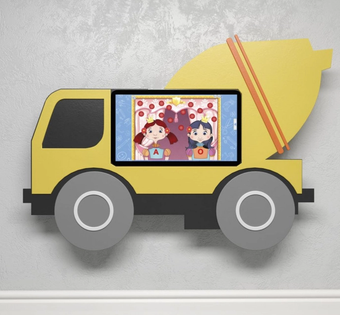 Замечательная настенная панель, имеющая форму бетономешалки, является логопедическим комплексом, насыщенным играми, которые помогут развить речь и произношение ребенка. Комплекс представляет собой интерактивную программу. Программная оболочка модуля содержит более девяноста игр логопедической направленности. Игры не повторяются. Каждый тематический блок содержит разное количество игр, взаимно дополняющих друг друга и усиливающих развивающий эффект. Обращаясь к блоку упражнений на артикуляцию, вы найдете игры на укрепление мышц и связок речевого аппарата для отработки произношения сложных звуков. Есть в программе блок с дыхательными упражнениями, цель которых развить глубокие отделы дыхательной системы, участвующей в зарождении энергичного звука. Эти упражнения помогают оформить хороший выдох. Игры на дыхание позволяют визуально контролировать речевой процесс. Прелесть именно этого логопедического комплекса в том, что занятия проходят в игровой форме. Игры сопровождают персонажи, созданные с фантазией и любовью. Они веселые и красочные. Озвучены игры очень качественно. Дети быстро запомнят персонажей, подружатся с ними. Когда скуке места нет, обучение происходит с огромным желанием и даёт отличный результат. Из четырнадцати блоков программы смело выбирайте любой! Чем займёмся сегодня, малыш? Давай потренируем сильное «р»! Выбирай любой звук, любую игру! Работать с детьми можно начинать в любом возрасте. Уровень подготовки будет возрастать с каждым уроком. Все игры можно подкорректировать, используя дополнительные настройки. Специалистам не составит труда легко оперировать доступом к играм – оболочка программы гибкая и удобная. Переходя от более низкого уровня сложности к более высокому, ребенок достигает устойчивого прогресса. Сложность регулируется. Разработчики учли одновременное участие в играх обучающего и ученика. Упражнения можно использовать индивидуально, а можно заниматься группе детей. Учиться должно быть интересно, и производитель позаботился об этом, создавая яркий, красочный интерактивный логопедический комплекс.