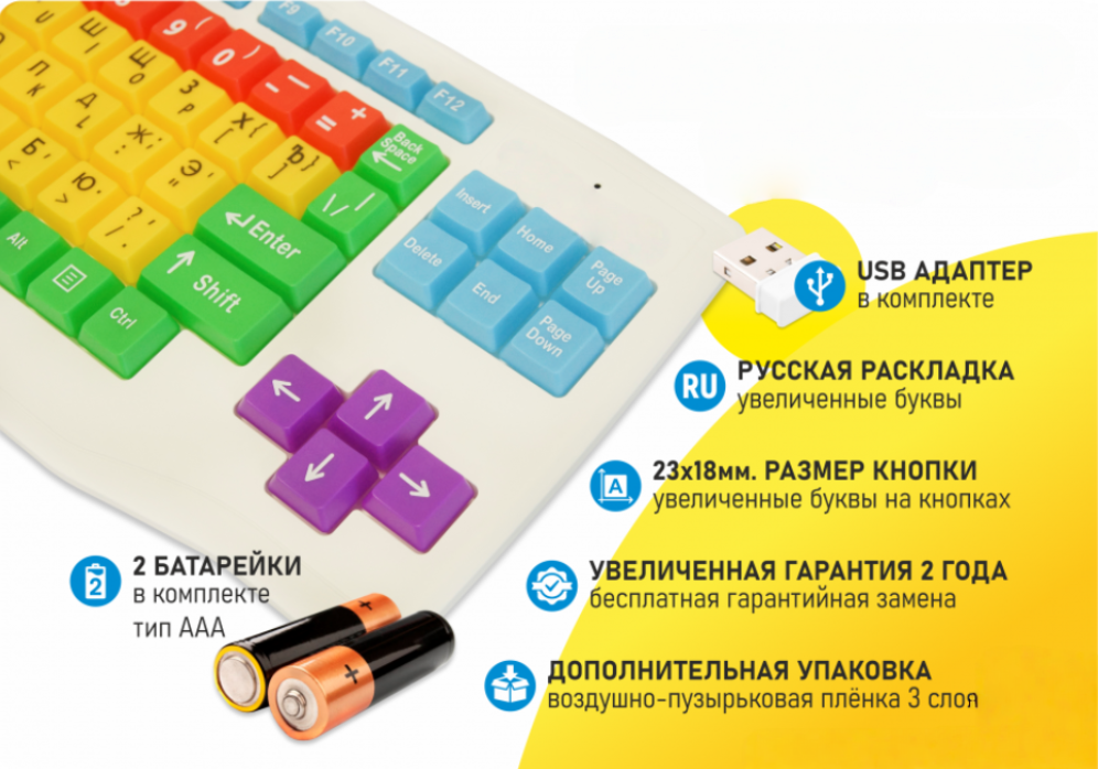 Клавиатура с большими кнопками для слабовидящих или с ДЦП
