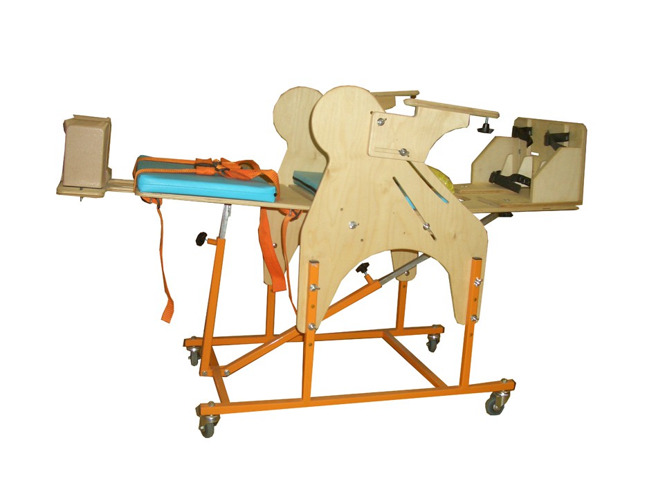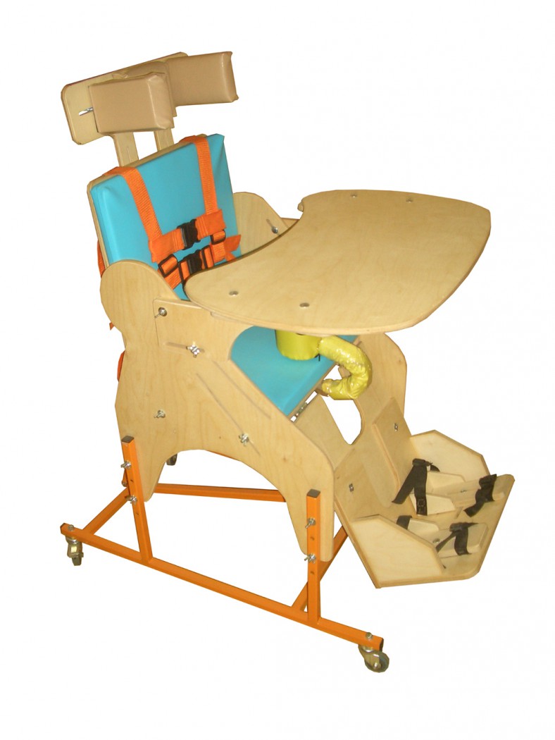 Опора для сидения представляет собой ортопедическое кресло на деревянной раме, расположенной на металлическом четырехколесном основании. Все колеса поворотные, задние колеса оснащены стояночными тормозами. Сидение и спинка оснащены съемными мягкими подушками. На подножке расположены пластиковые крепления для ступней типа «сандалии» с задними упорами и крепежными ремешками. Опора оснащена подголовником и съемным столиком, устанавливаемым на подлокотники.