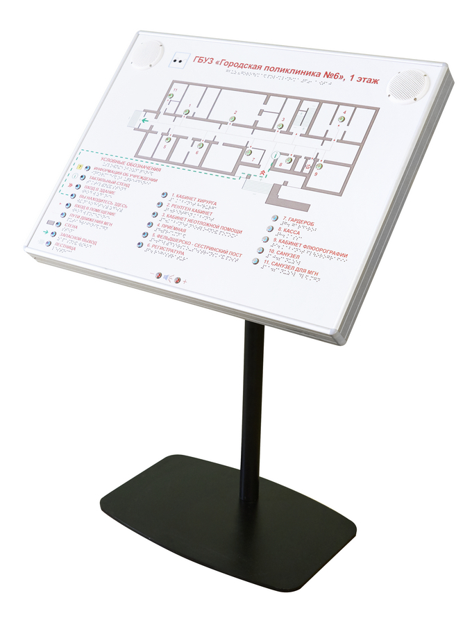 Тактильно-звуковая мнемосхема в комплекте с вертикальной стойкой. Максимальный комплект.