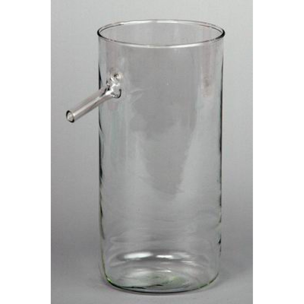 Стакан изготовлен из прозрачного стекла в форме цилиндра, в верхней части которого расположена отливная трубка для слива воды под углом в не менее 70 градусов.