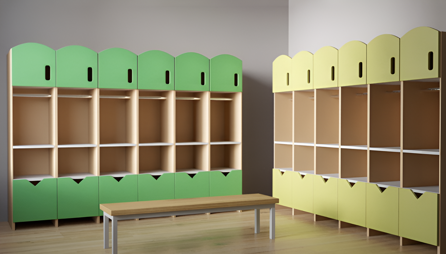 Детский гардероб создан для детей от трех до восьми лет. Предназначен для развивающих студий, детских садов, реабилитационных центров и конечно для детских домов. Помогает детям с раннего возраста учиться самостоятельности, вырабатывая полезные качества. Ненавязчивый дизайн гардероба позволяет с первых минут привлечь внимание ребенка, что способствует стимуляции поддержания порядка.