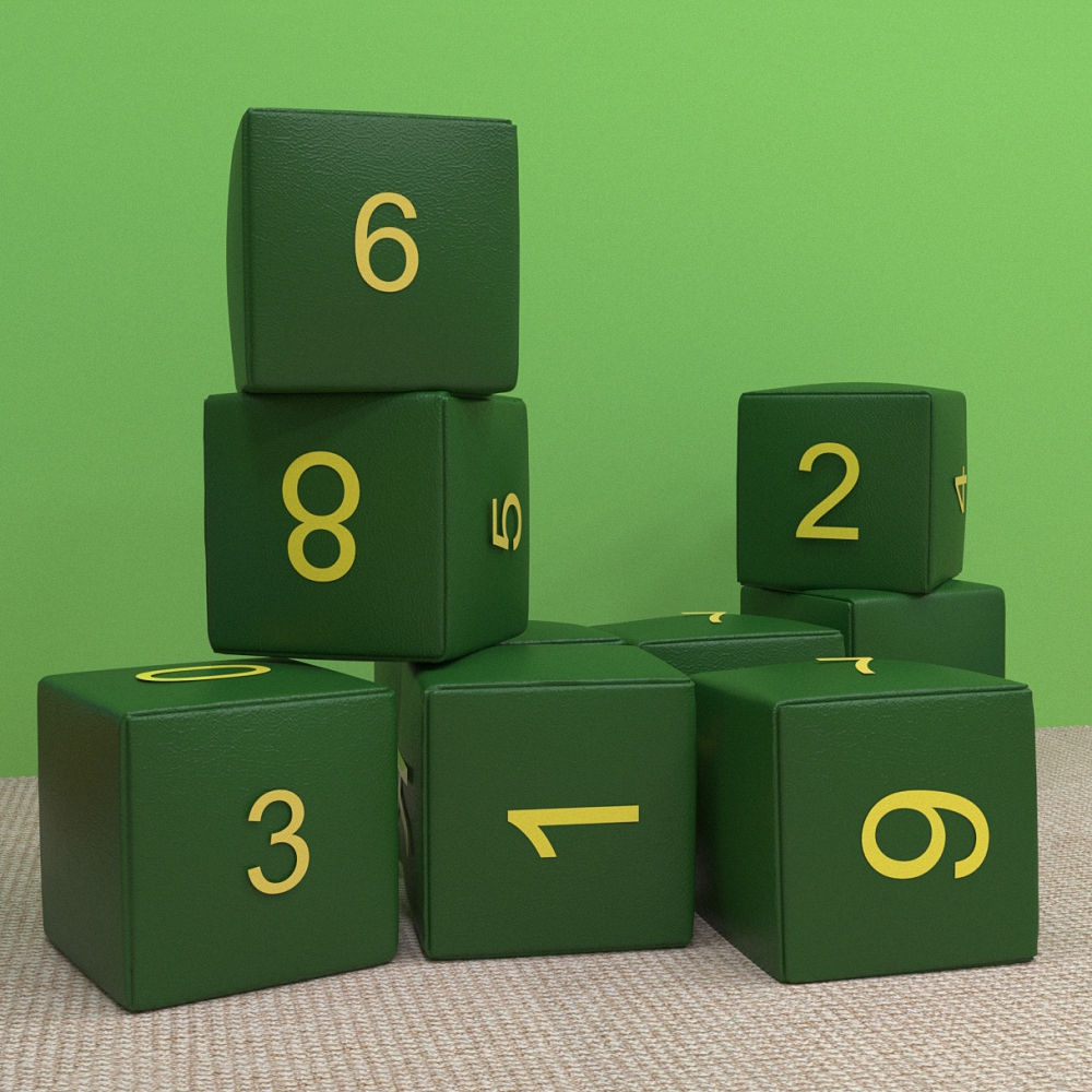 Представляет из себя набор мягких огромных разноцветных кубиков с буквами, цифрами и арифметическими знаками на гранях. Из них можно как строить домики и башни, так и использовать по прямому назначению – малыши могутна кубиках с буквами изучать алфавит, складывать слова и учиться читать, а с «кубиками-цифрами» - знакомиться с цифрами, тренироваться в порядковом и обратном счёте. Детали безопасны в использовании даже для самых маленьких – ведь они изготовлены из мягкого материала, не имеют острых краёв, их невозможно проглотить из-за большого размера и одновременно с этим легко держать в руках и нельзя разгрызть. Благодаря особенностям покрытия (искусственная кожа) представленный набор выгодно отличается от похожих, детали которого изготовлены из вспененного материала без дополнительного чехла; ведь наши изделия легко моются и дезинфицируются без потери качества. Устойчивы к разрывам и деформации благодаря структуре наполнителя.