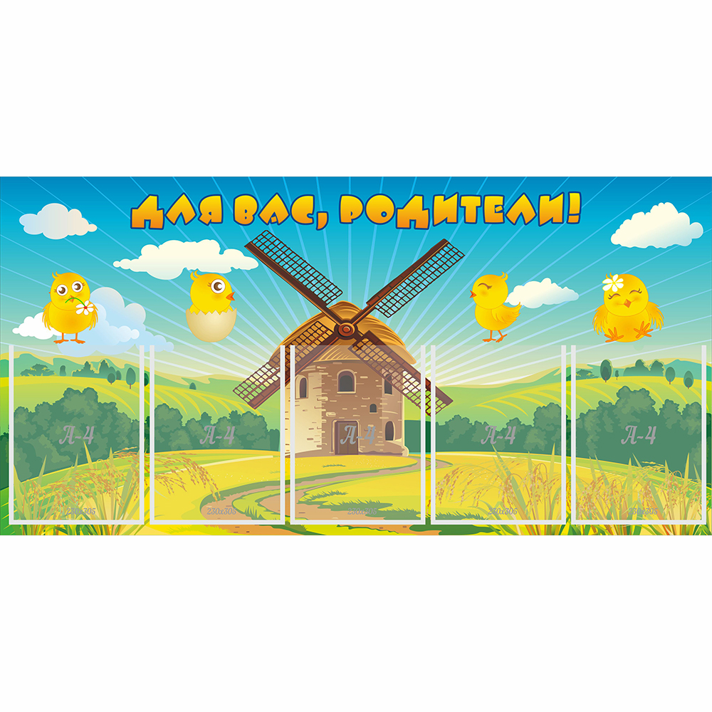Мы предлагаем вашему вниманию информационный стенд для родителей, который просто идеально подходит любому детскому саду, благодаря универсальному изображению и цветовому решению. К тому же стенд практичный, на нем можно разместить сразу несколько объявлений, свод правил и множество другой полезной каждому родителю информации. Лучшее решение для каждого современного детского сада.