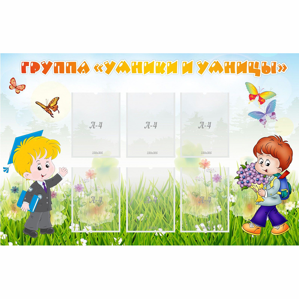 Ребята, изображенные на стенде, всегда готовы получать и применять новые знания. А как это у них получается, родителям поведают информационные материалы, помещенные в шесть прозрачных пластиковых карманов. В них могут размещаться фотографии, рисунки, плакаты, важные объявления, распорядок дня и прочая нужная информация для детей и их родителей.