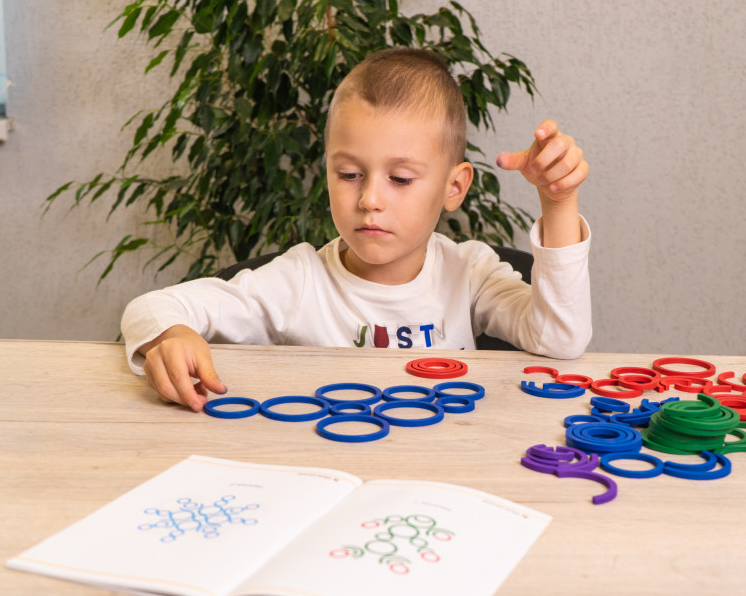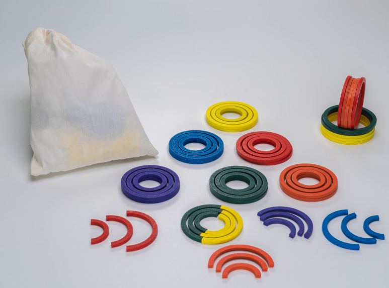 Модуль № 9 включает элементы, имеющие форму кольца, полукольца, круга, полукруга, дуги (кольца и полукольца). Отличное подспорье в развитии творческого воображения, когда из круглых и полукруглых линий можно создавать самые удивительные фигуры.