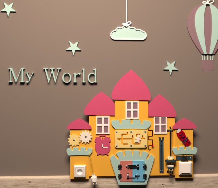 Развивающий деревянный бизиборд, выполненный в виде крепости , имеет широкое разнообразие элементов, что позволяет ребенку познакомиться внешним миром, а также улучшить воображение, мелкую моторику, логику, научиться различать цвета.