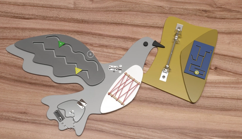• Играть в бизиборд «Почтовый голубь» можно как вместе с вашим ребенком, так и наблюдая как детки играют вместе. Совместные игры очень важны для детей и укрепляют связь с родителем.