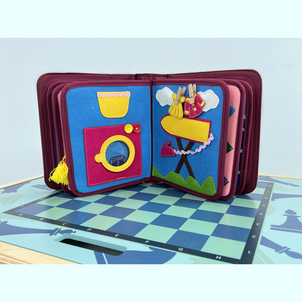 Первая книга должна быть особенной. Такой, которая не порвется от неопытного перелистывания страниц, в которую можно полноценно играть. «Первая книга» непременно заинтересует любого малыша. На каждом развороте есть интерактивные зоны. Взаимодействуя с ними, ребенок освоит липучки, пуговицы и другие способы крепления, что подготовит его к самостоятельному одеванию одежды/обуви с такими застежками.