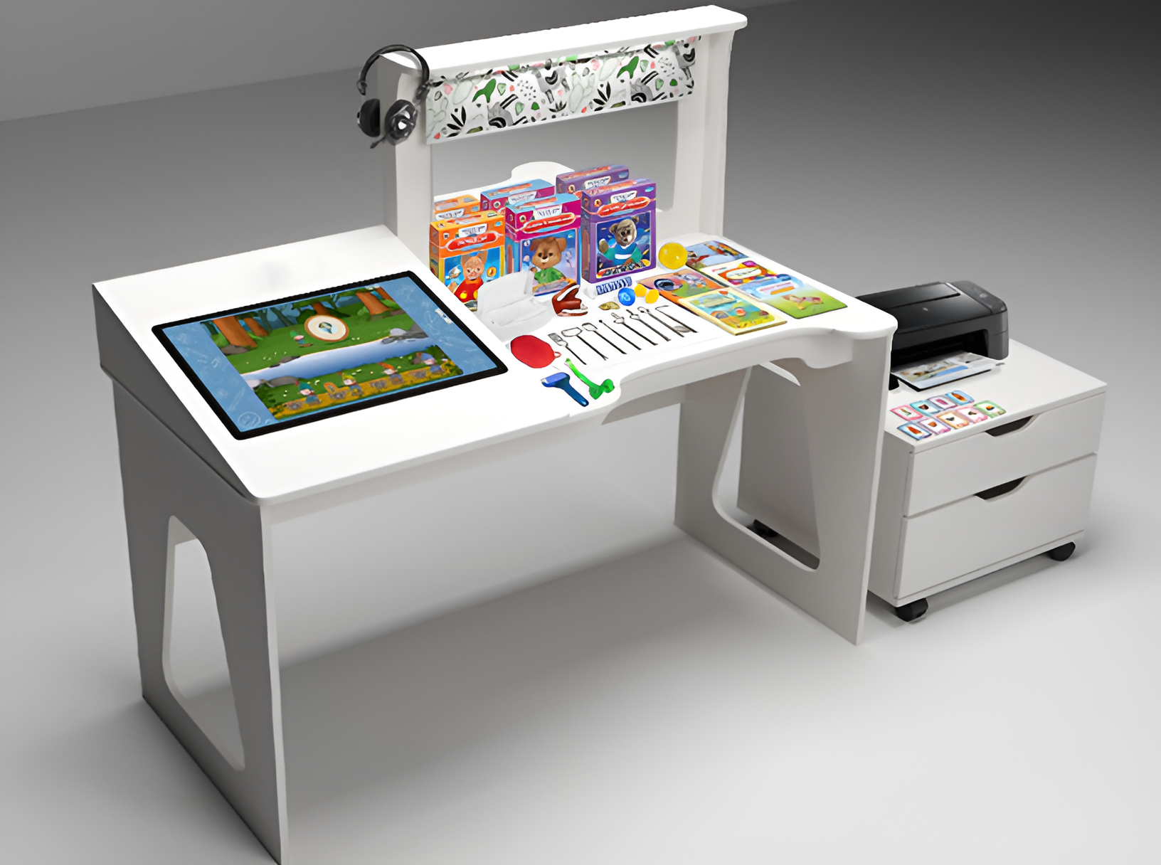 Основное преимущество профессионального стола логопеда "Лого-Про" состоит в сбалансированности и высокой функциональности, а также техническим средствам и программному обеспечению позволяющему более качественно проводить логопедические сеансы с детьми.