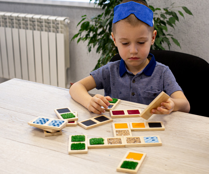 «Тактильное домино» предназначено для обучающих занятий с детьми дошкольного возраста, помогает ощутить разные фактуры предметов, их цвет, тактильные ощущения. Работа с набором учит детей групповой игре и взаимодействию в коллективе, тренирует зрительную память, развивает тактильное восприятие и пространственное мышление, а также помогает детям анализировать и сравнивать.