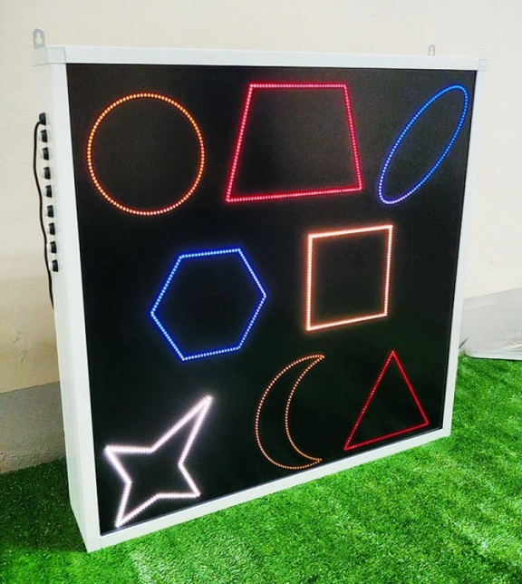 Главная Каталог Оборудование для сенсорных комнат Светозвуковые панели Панель интерактивная со светящимися цветными фигурами