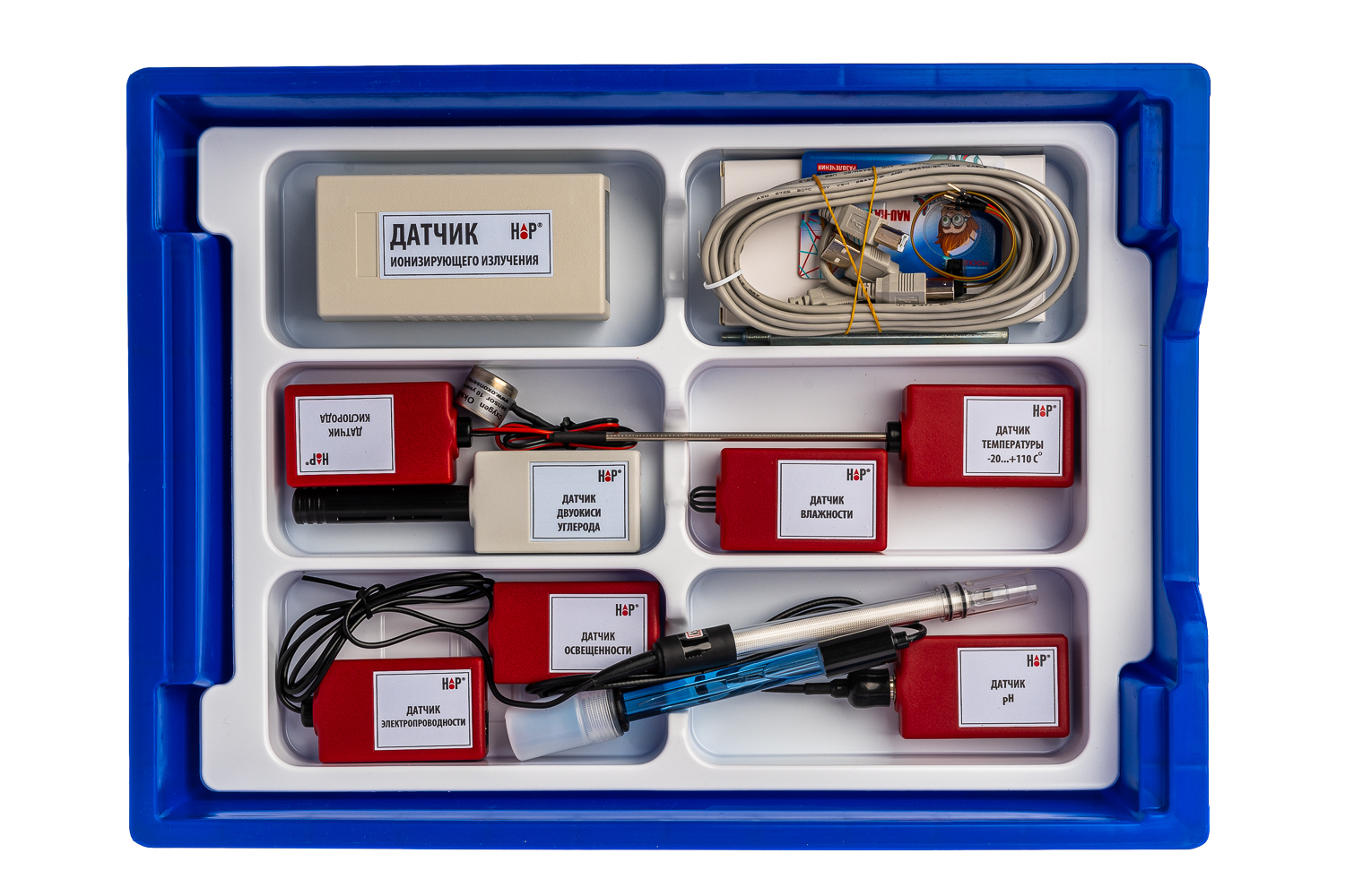 Цифровая лаборатория (за исключением микроскопа и цифровой видеокамеры) укомплектована в пластиковую систему хранения, которая закрывается прозрачной пластиковой крышкой на защелках для обеспечения наблюдения за содержимым. Комплект оборудования и датчики в системе хранения располагаются на ложементе.