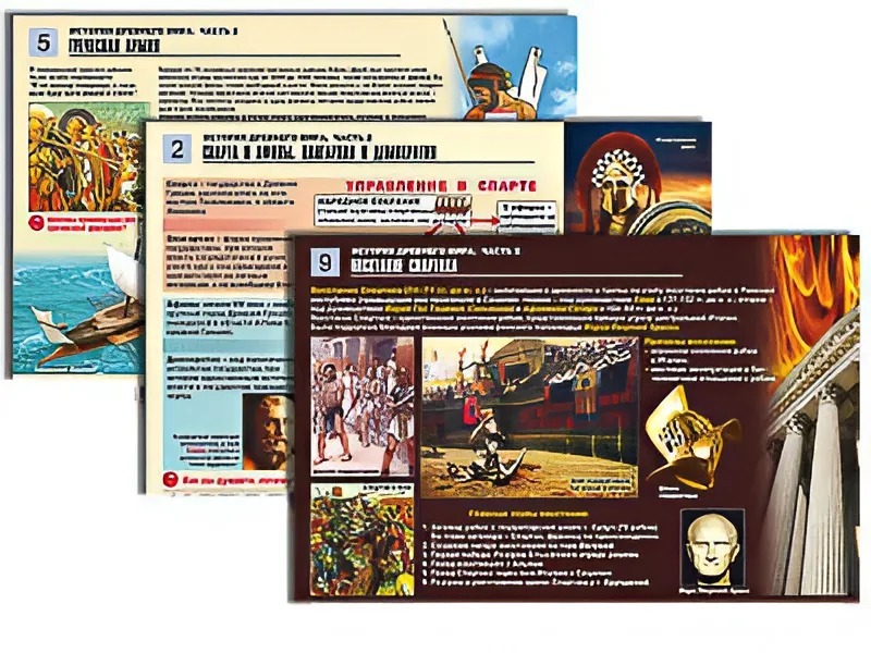 Комплект таблиц по истории "История древнего мира. Часть 2" раздаточные (цветные, ламинированные, А4, 12 штук) - fgospostavki.ru - Дмитров