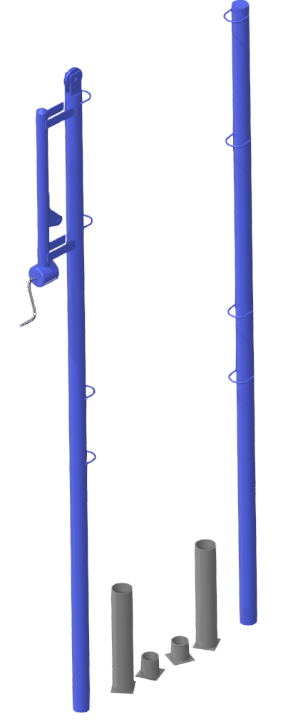 Стойки устанавливаются в закладные стаканы и вынимаются из них при необходимости освобождения площадки. Стаканы закрываются крышками.