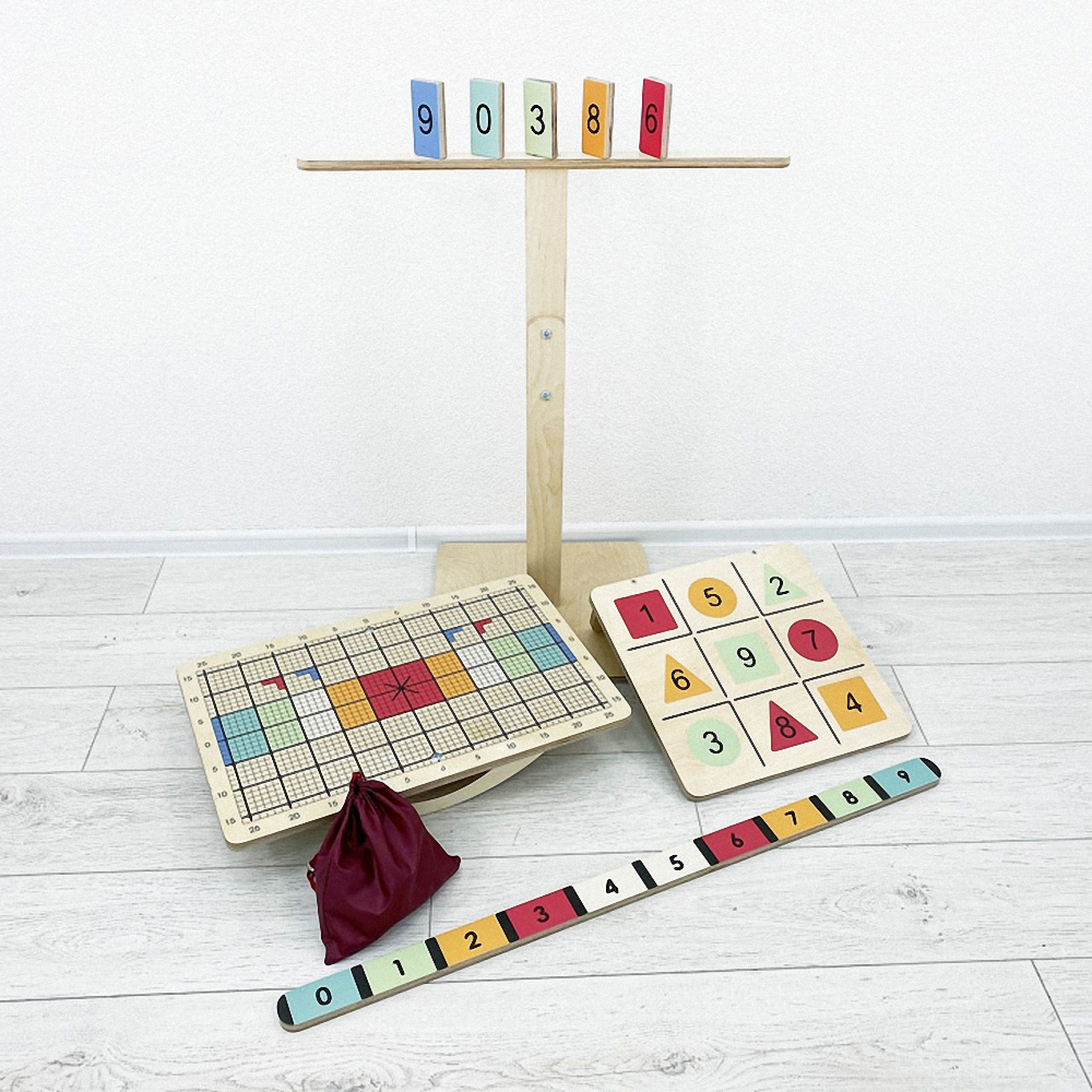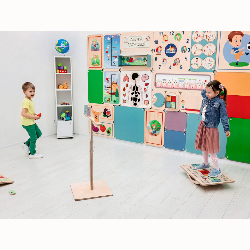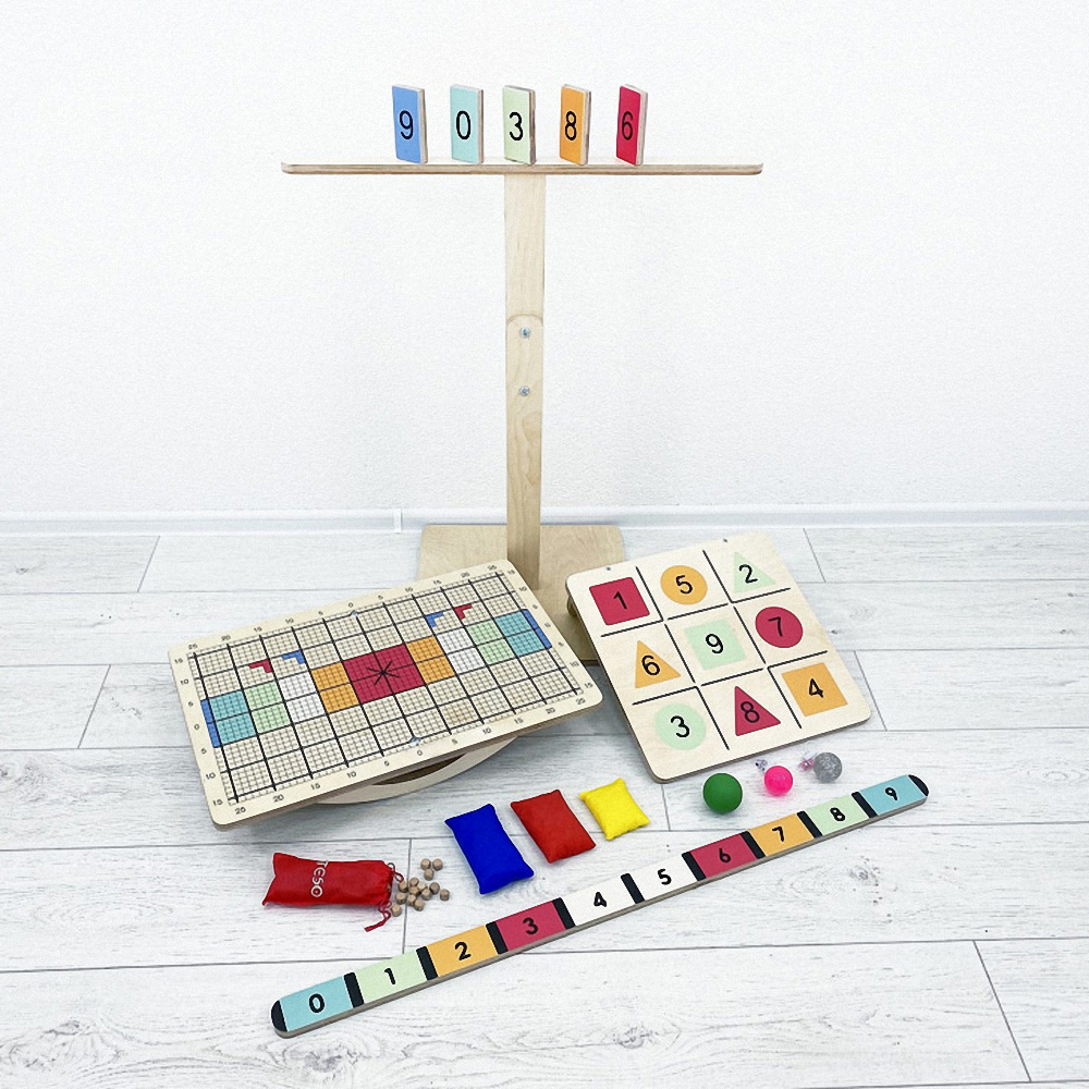 Балансир изготовлен из прочной экологичной фанеры, не имеет острых углов, о которые можно травмироваться. Изделие хорошо отшлифовано и покрыто огнезащитным лаком, стойким к загрязнениям и истиранию. В комплекте идёт набор дополнительного инвентаря для занятий, методическое пособие и универсальный ключ для поворота полозьев.