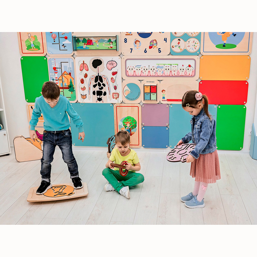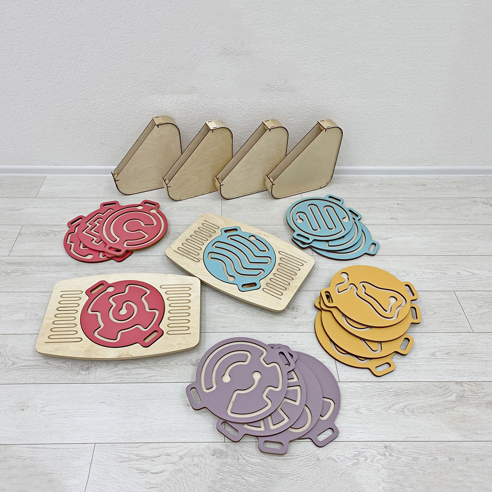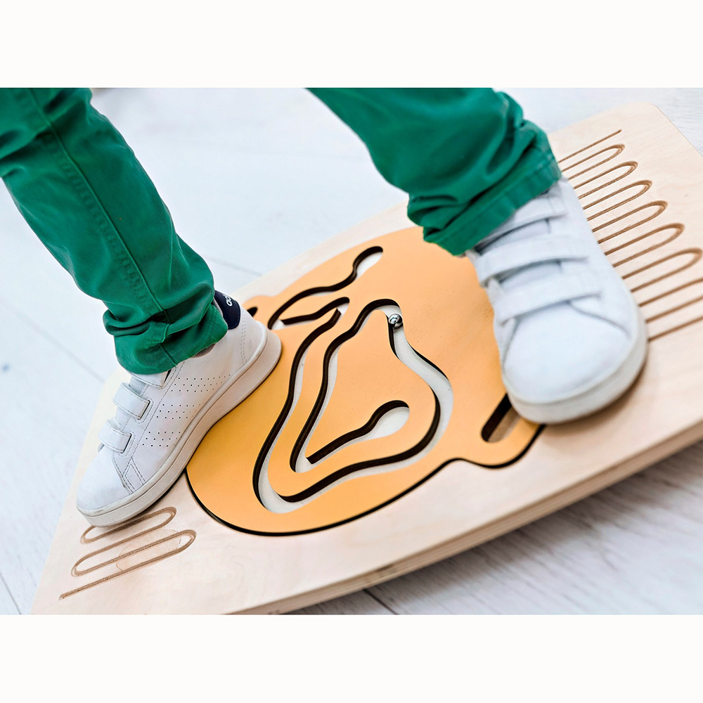 Это игровой нейротренажёр для улучшения координации движений, развития внимания и логического мышления. Состоит из двух балансиров для ног и набора комплектов из четырёх лабиринтов-балансиров для рук, которые вкладываются в специальное углубление на ножном балансире.
