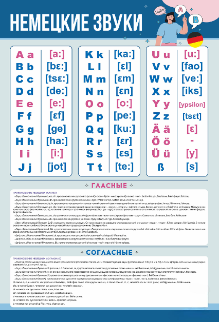 Стенд предназначен для наглядного отображения информации о правильном произношении букв немецкого алфавита.