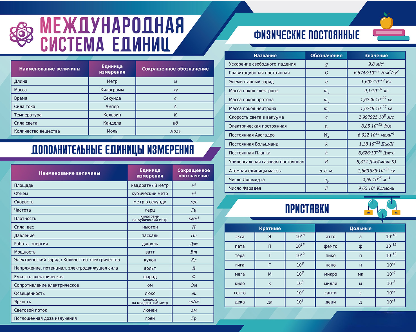 Главная Каталог Стенды Кабинеты Физика Стенд "Международная система единиц. Физические постоянные. Приставки"