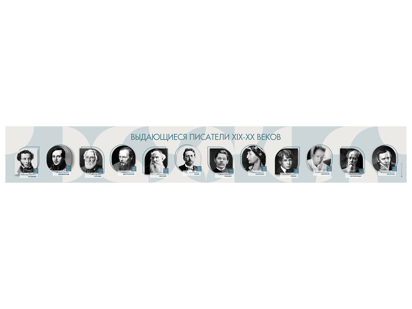 Главная Каталог Стенды Кабинеты Русский язык и литература Стенд-лента "Выдающиеся русские писатели"