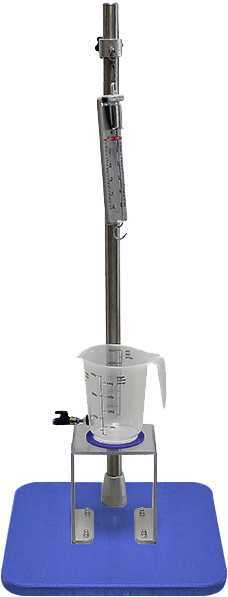Оборудование выполнено в виде учебного стенда, конструктивно представляющее собой установленную на неподвижном основании вертикальную неподвижную стойку, на которой закреплен прецизионный динамометр с подвешенным грузом. Груз погружается в стоящий на лабораторном подиуме мерный стакан с жидкостью, глубина погружения регулируется путем вертикального перемещения динамометра по стойке с помощью лабораторного подъемника в виде втулки с регулируемой опорой.