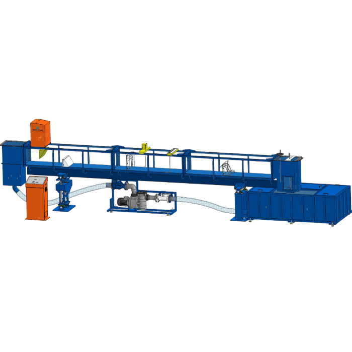 К проточной части крепится напорный бак, который служит для подачи воды в лоток и сливной бак, который служит для отвода воды из проточной части. Оба бака выполнены сварными из листовой стали и покрашены порошковой краской для защиты от коррозии.
