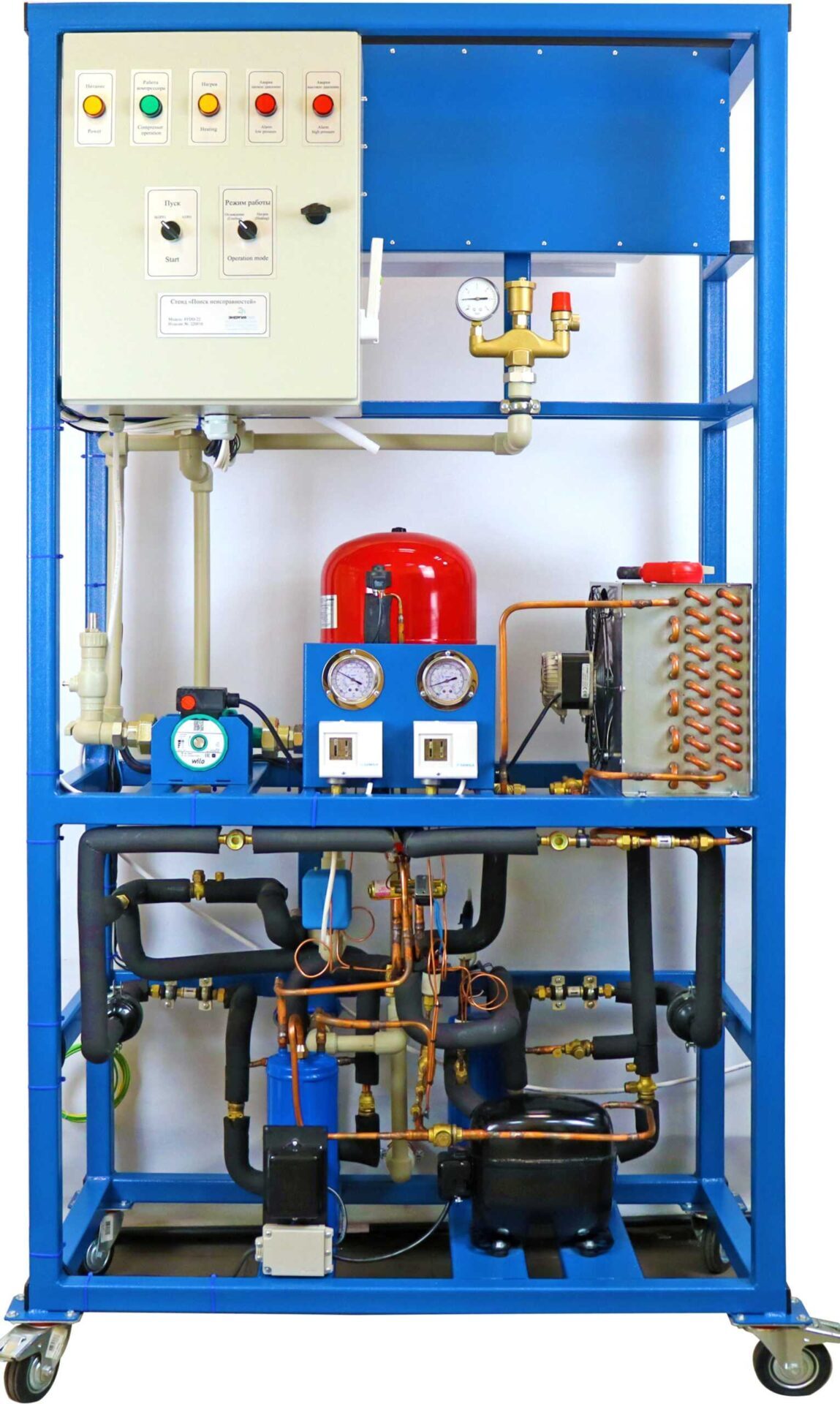 Предназначен для подготовки и проведения чемпионатов по компетенции «Холодильная техника и системы кондиционирования» и обучения проектированию, эксплуатации и сервисного обслуживания промышленных холодильных установок