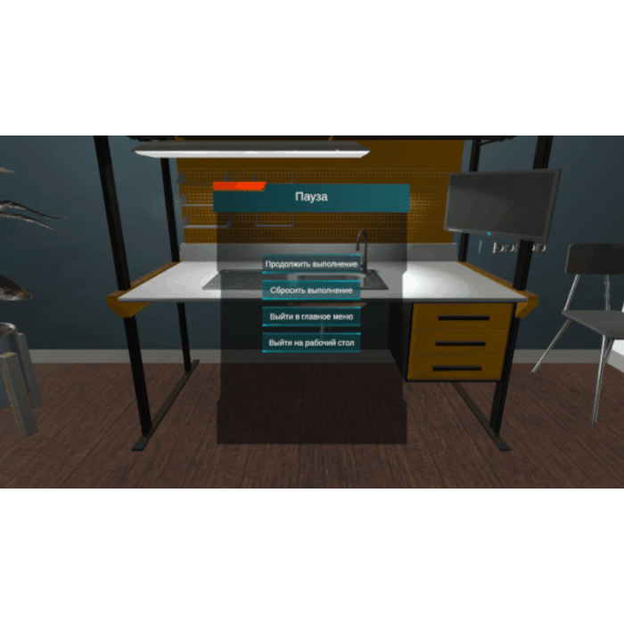 В программное обеспечение входит мультимедийное представление изучаемого процесса, условно разделенное на режимы обучения.